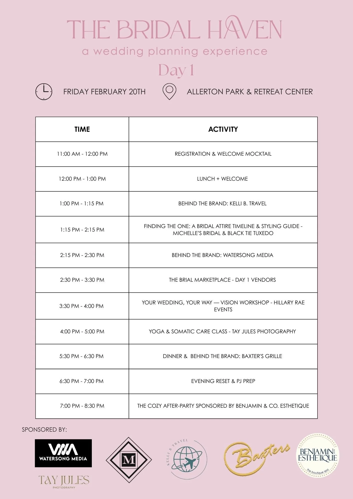 Join us for The Bridal Haven, a two-day planning experience designed to help you feel calm, confident, and excited for your wedding. Enjoy hands-on workshops, curated vendor showcases, design inspiration, and time to actually make decisions with guidance from seasoned pros.